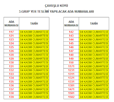Çavuşlu Köyü Yer Gösterim Tarihleri Duyurusu 3.Grup