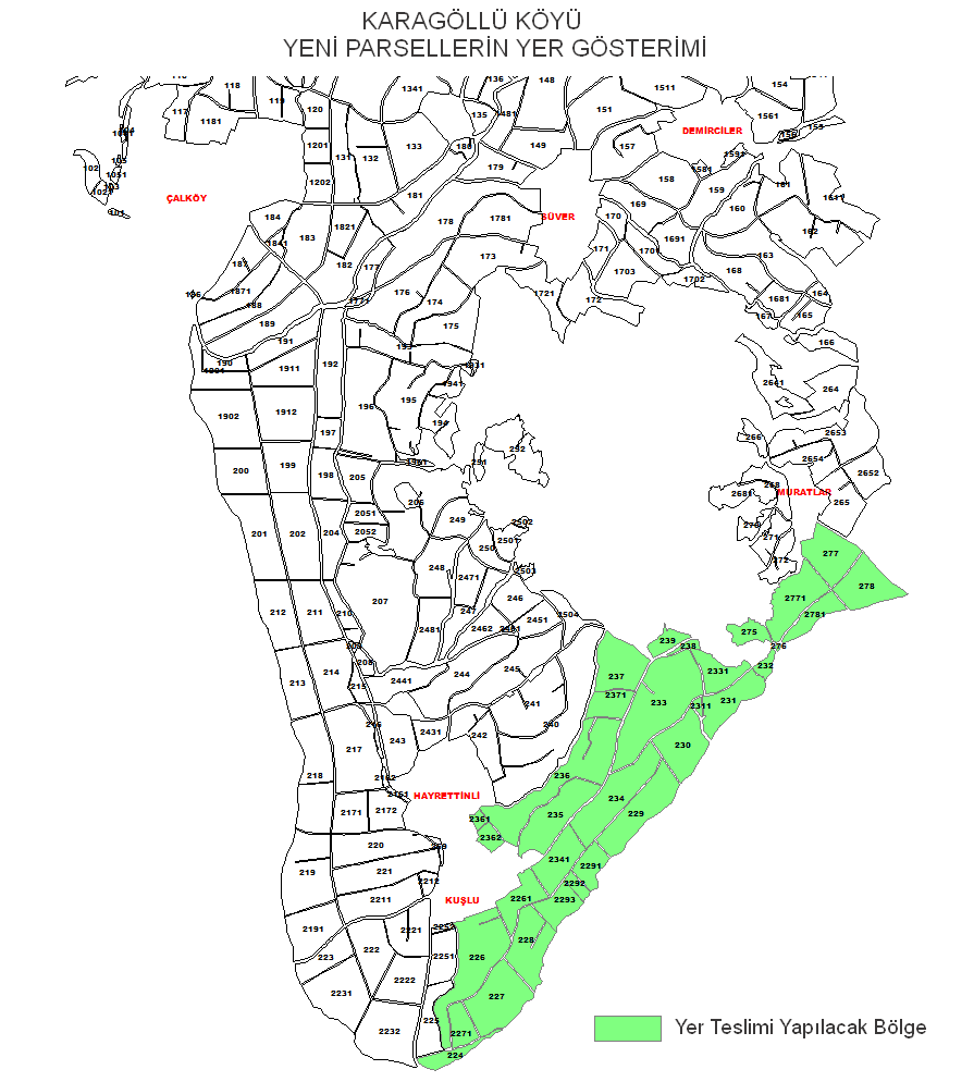 Karagöllü, Kocaeli Tahtalı Arazi Toplulaştırma Projesi Karagöllü Köyü Yeni Parsellerin Yer Gösterimi – 1.Grup Ağustos 9, 2023 Gönderen: l.acmaz 05 Ağu Karagöllü Köyü 1.GRUP Yeni Parsellerin Yer Gösterimi Tarihleri Duyurusu 09.08.2019 CUMA GÜNÜ ..YER GÖSTERİM TARİHLERİNİ AŞAĞIDAKİ LİSTEDEN TAKİP EDİNİZ.. Yer gösterimleri ADA numaralarına göre aşağıdaki harita ve listede belirtilen tarihlerde arazide yapılmaktadır. Arazi sahiplerine ilanen duyurulur. 09 AĞUSTOS 2019 CUMA GÜNÜ YAPILACAK LİSTE